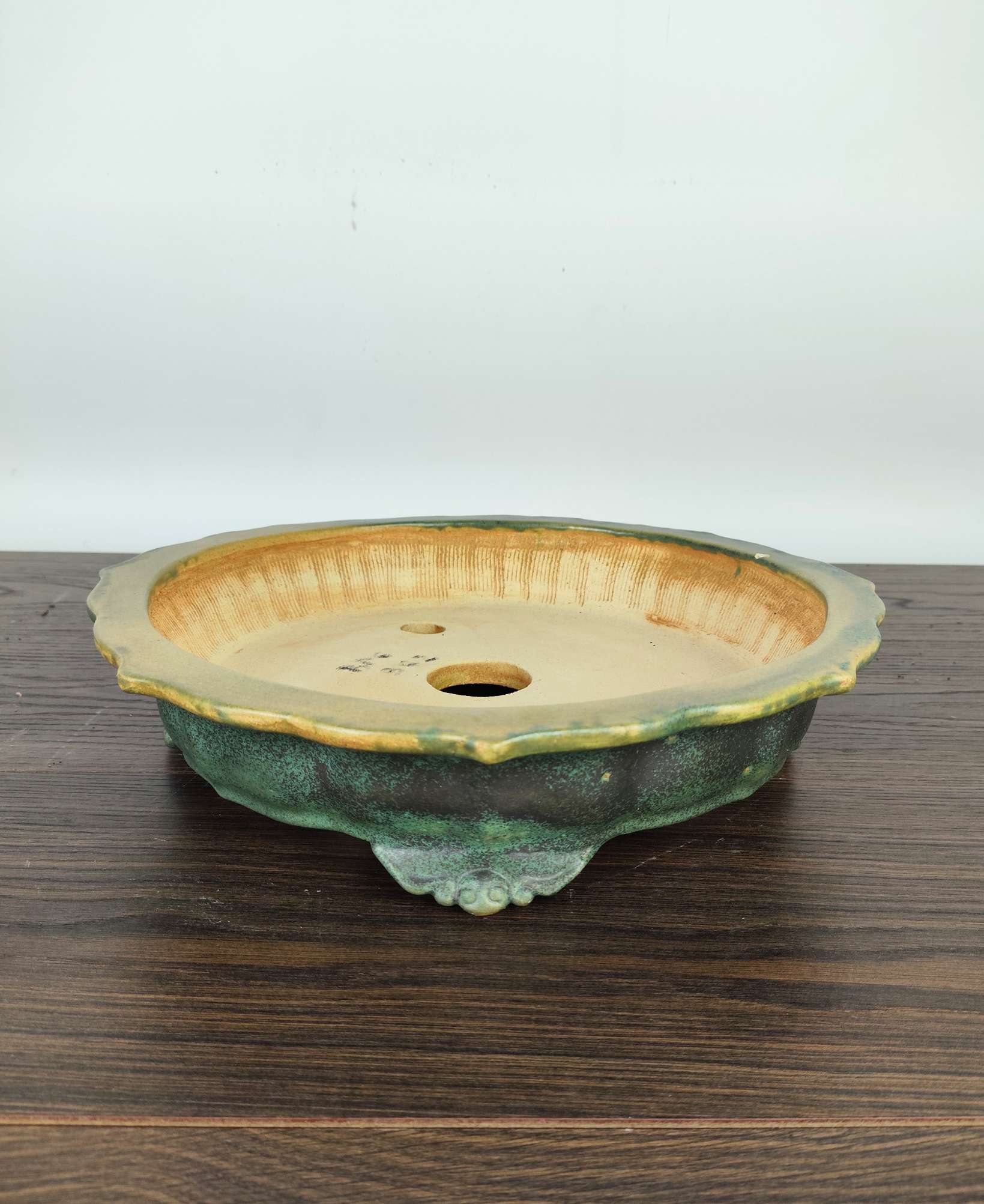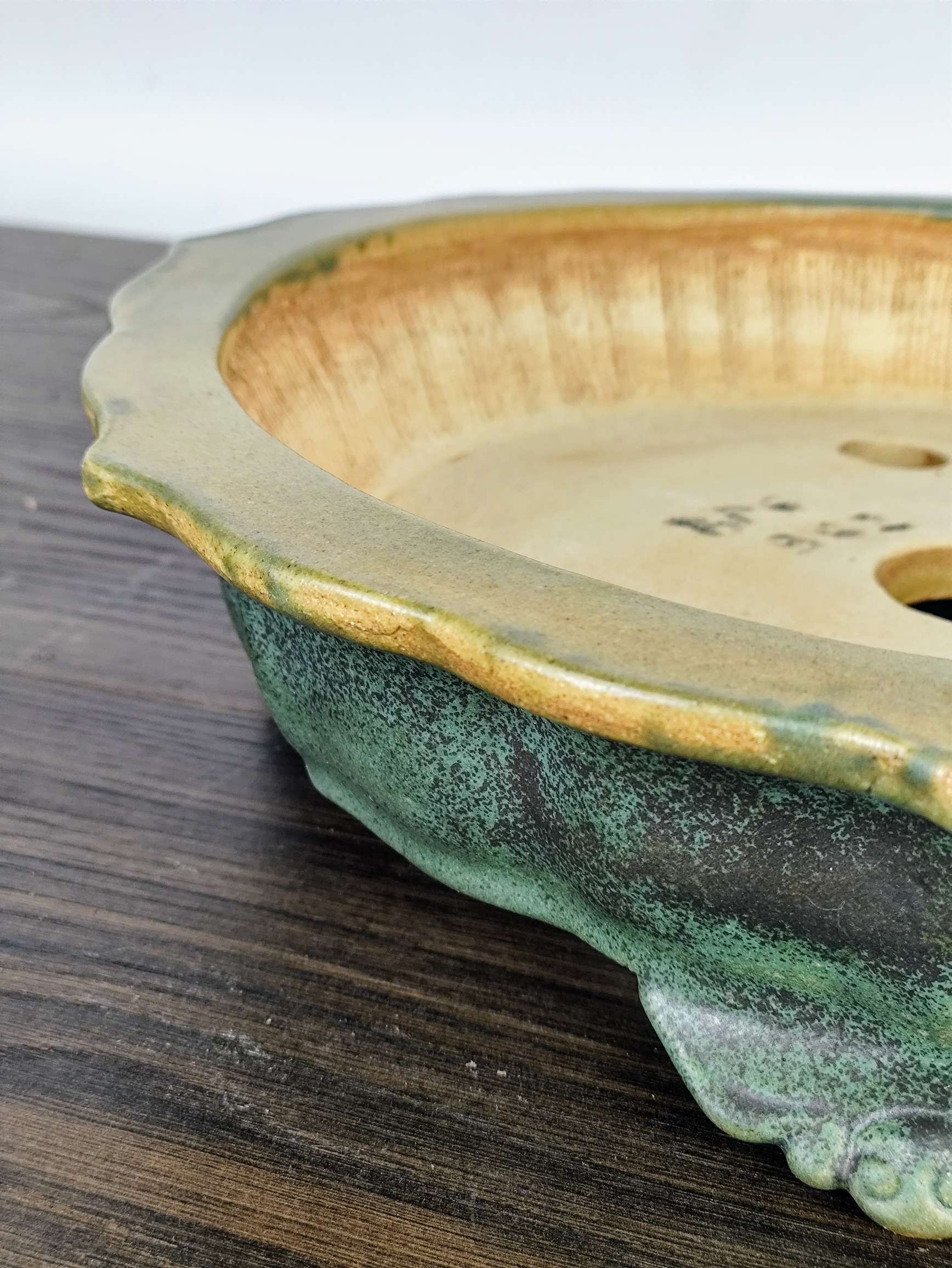 Hand made IBUKI bonsai pot by Mariusz Folda. Size: 32 x 7 high
