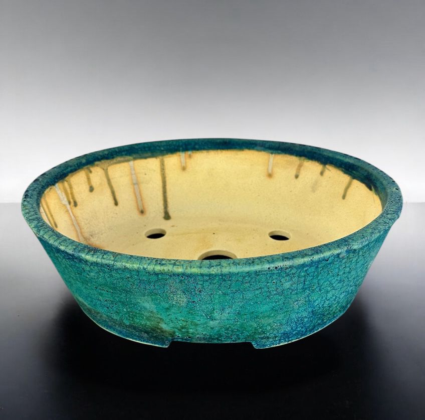 Hand made IBUKI bonsai pot by Mariusz Folda Private Collection. Size: 36,5 x 29 x 11 high