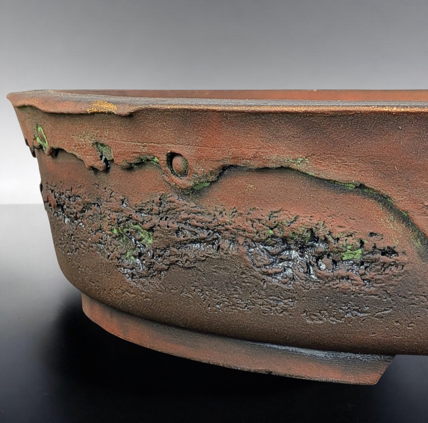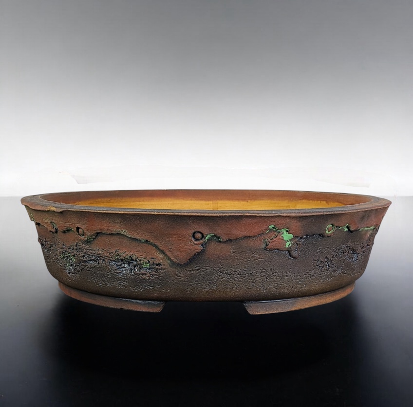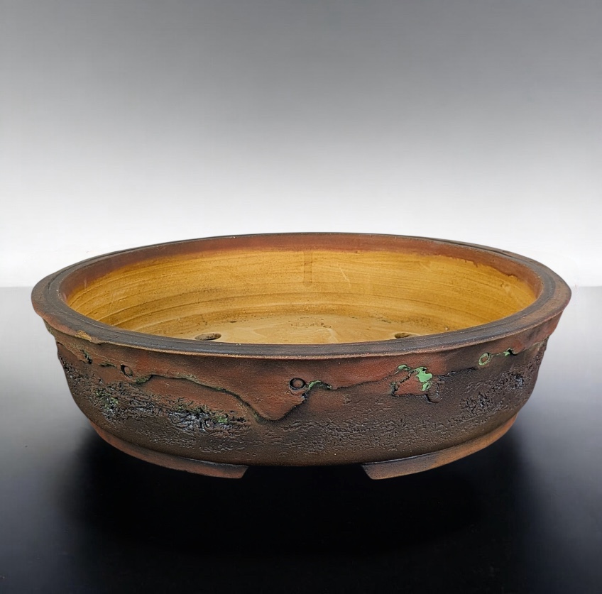 Hand made IBUKI bonsai pot by Mariusz Folda Private Collection. Size: 45,5 x 45,5 x 10,5 cm high