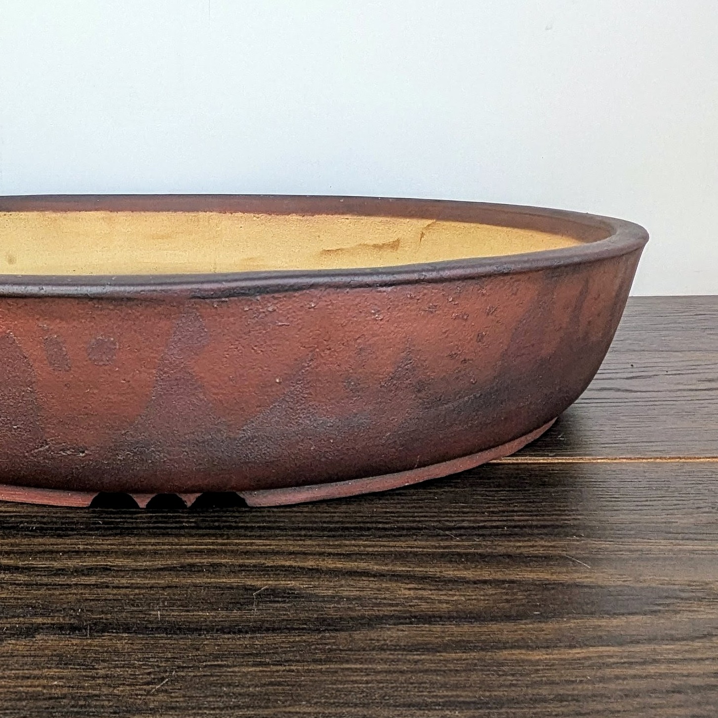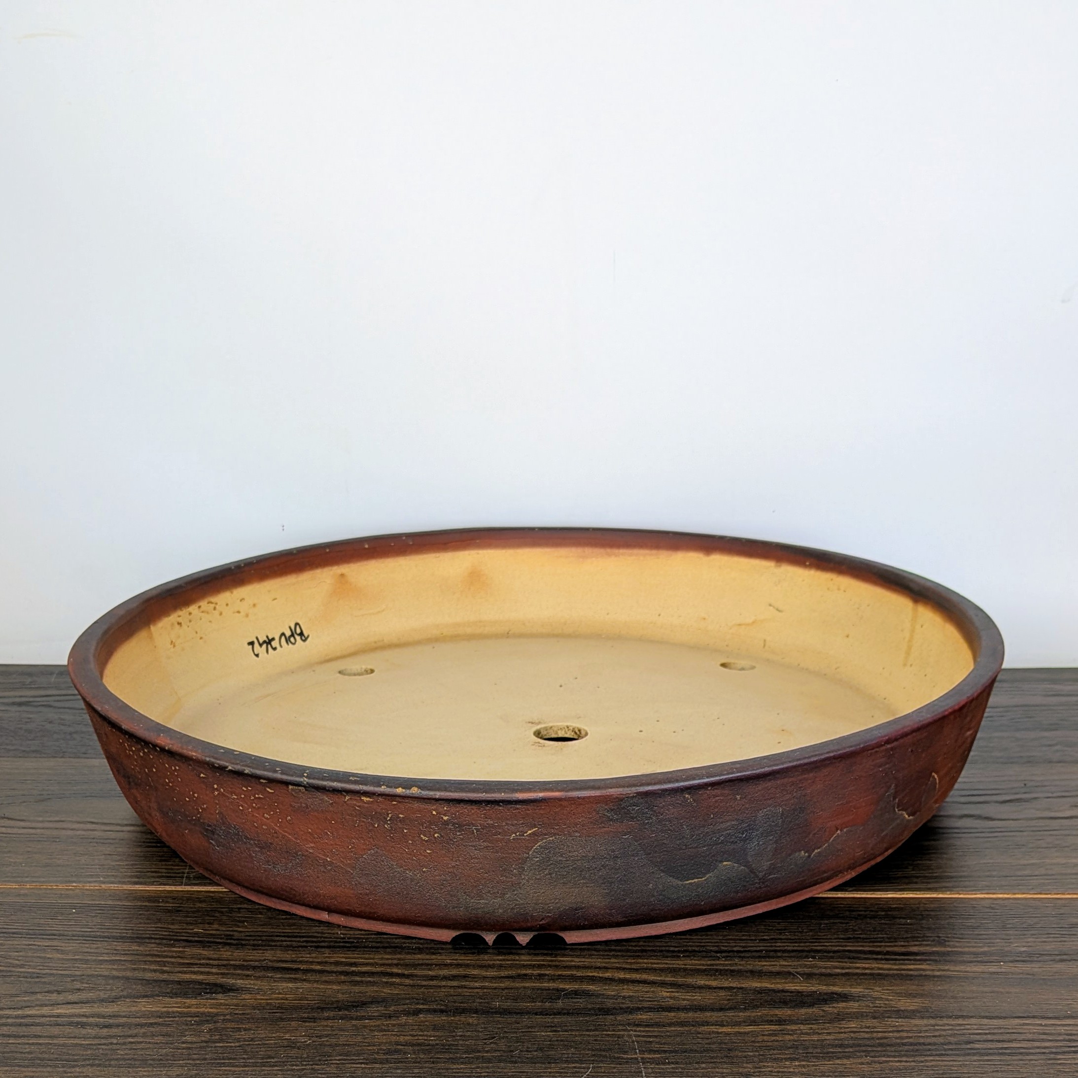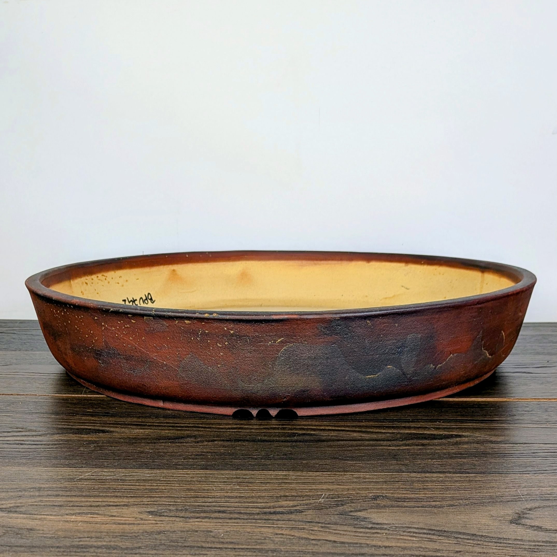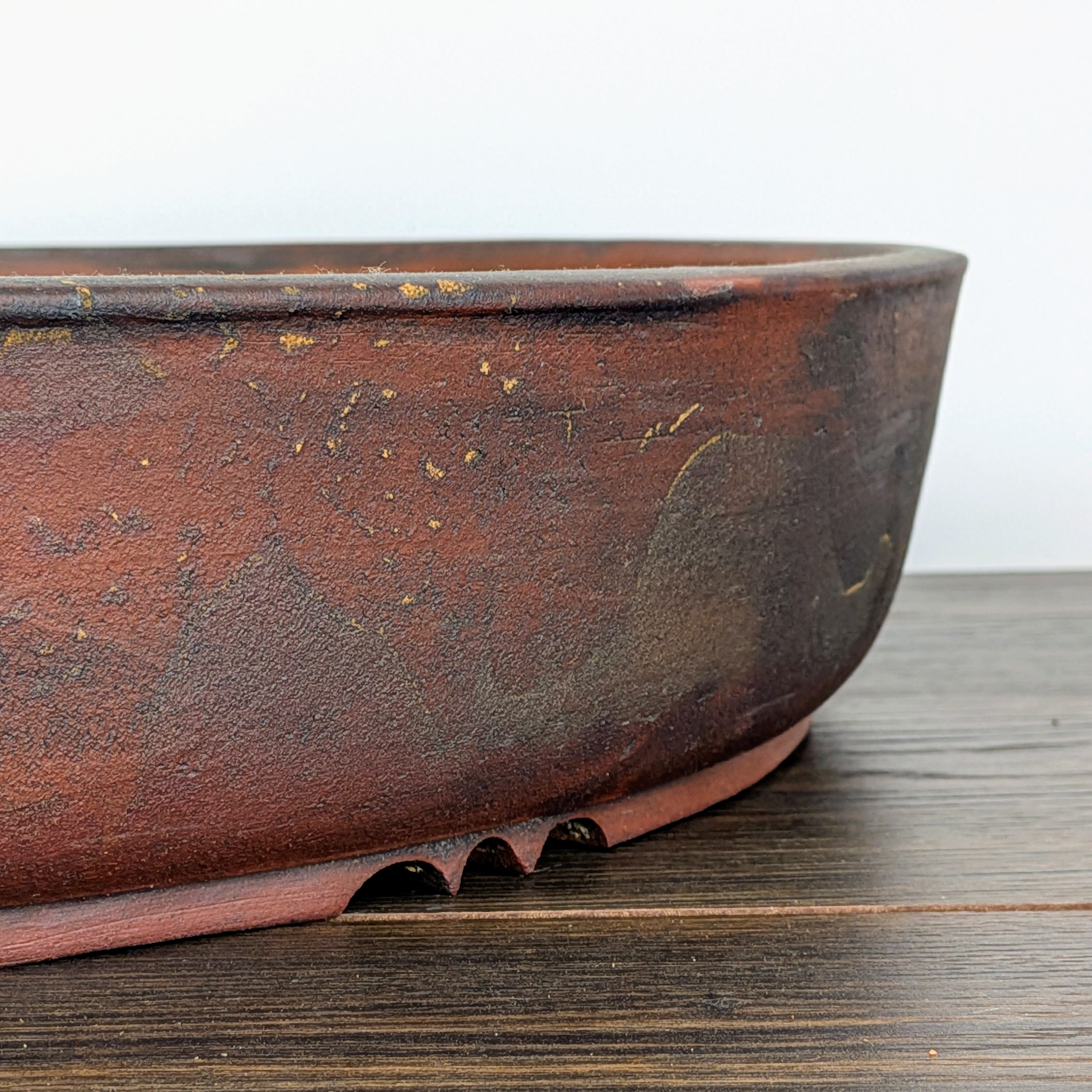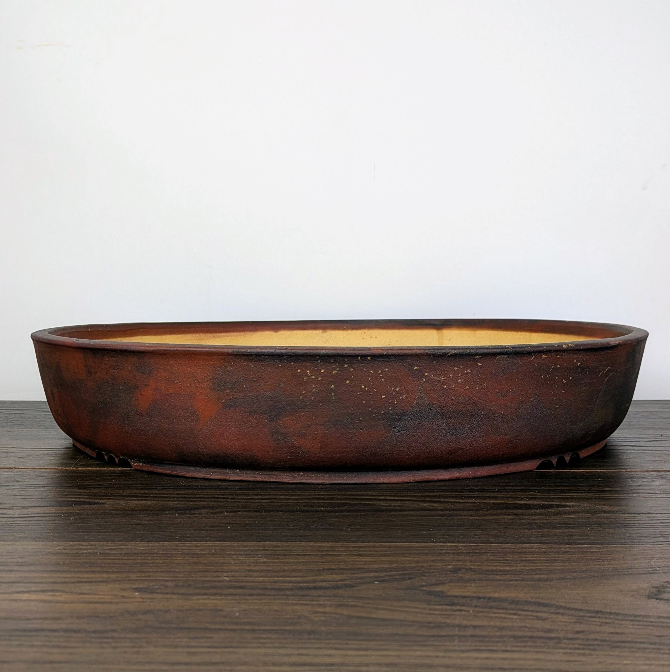 Hand made IBUKI bonsai pot by Mariusz Folda. Size: 53 x 9 cm high.