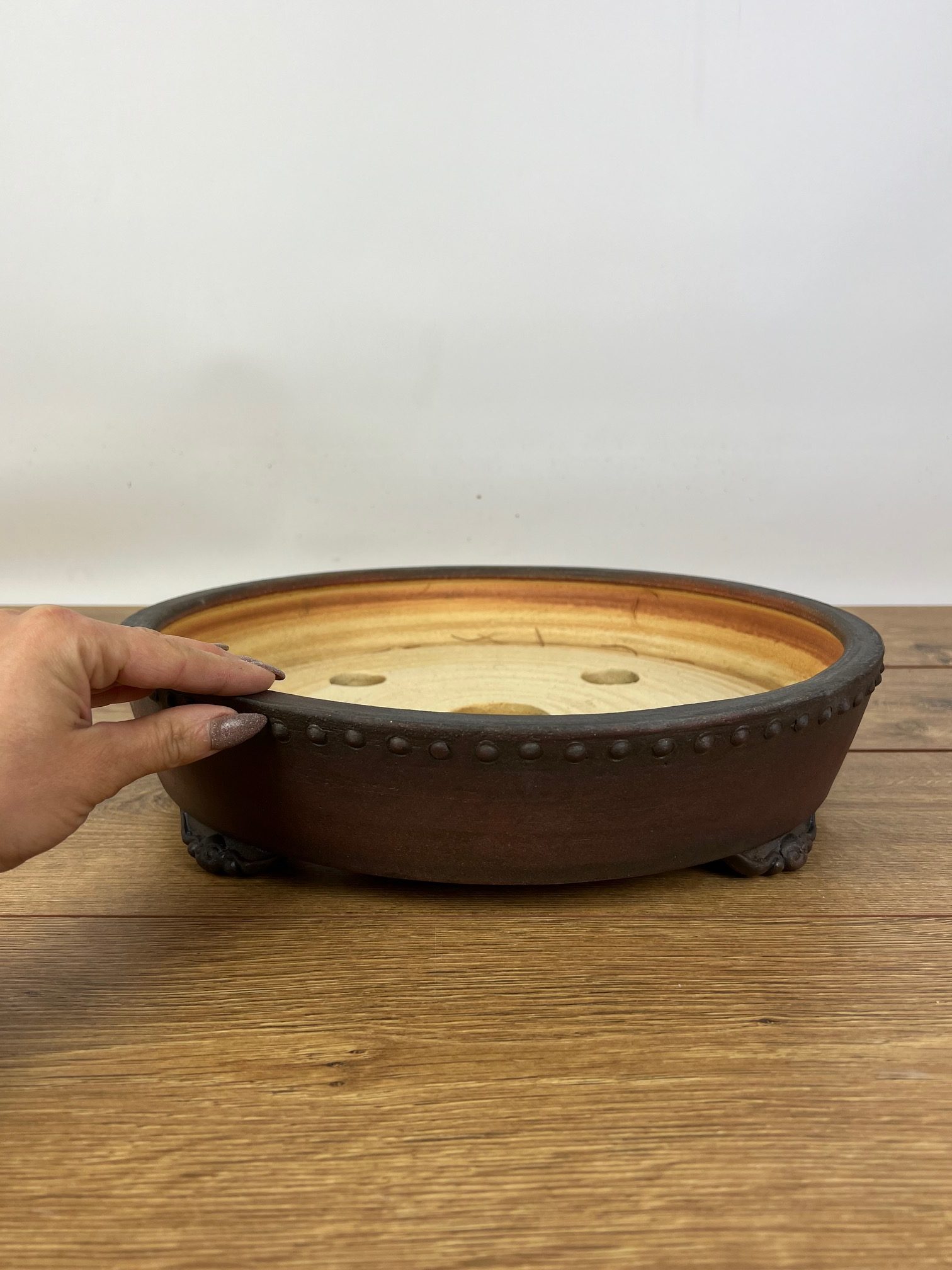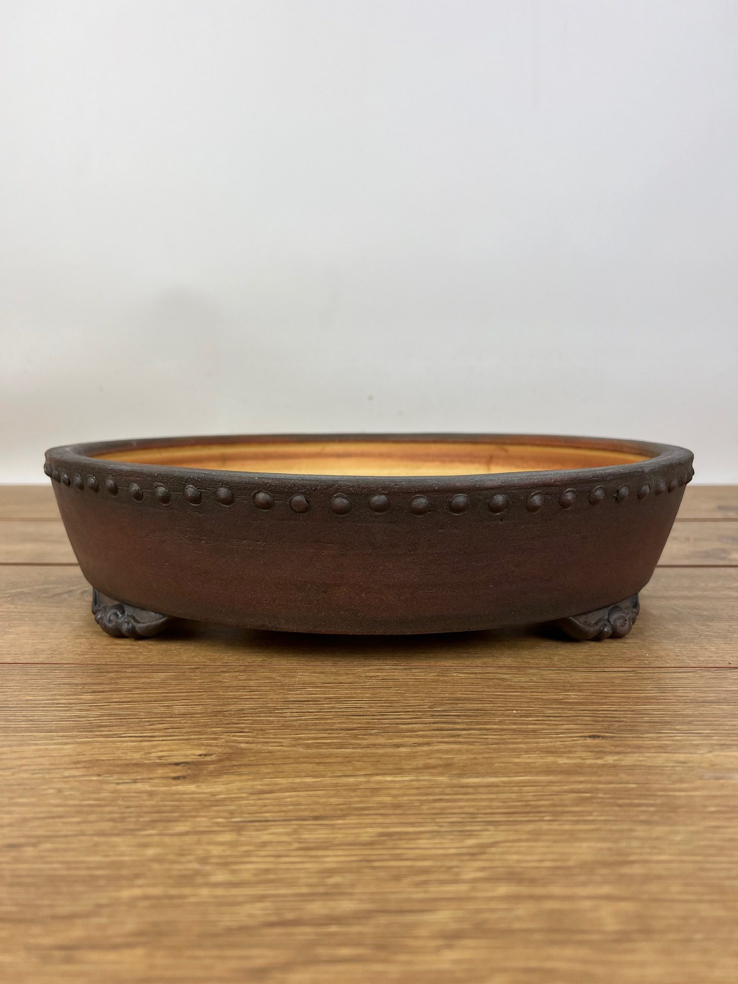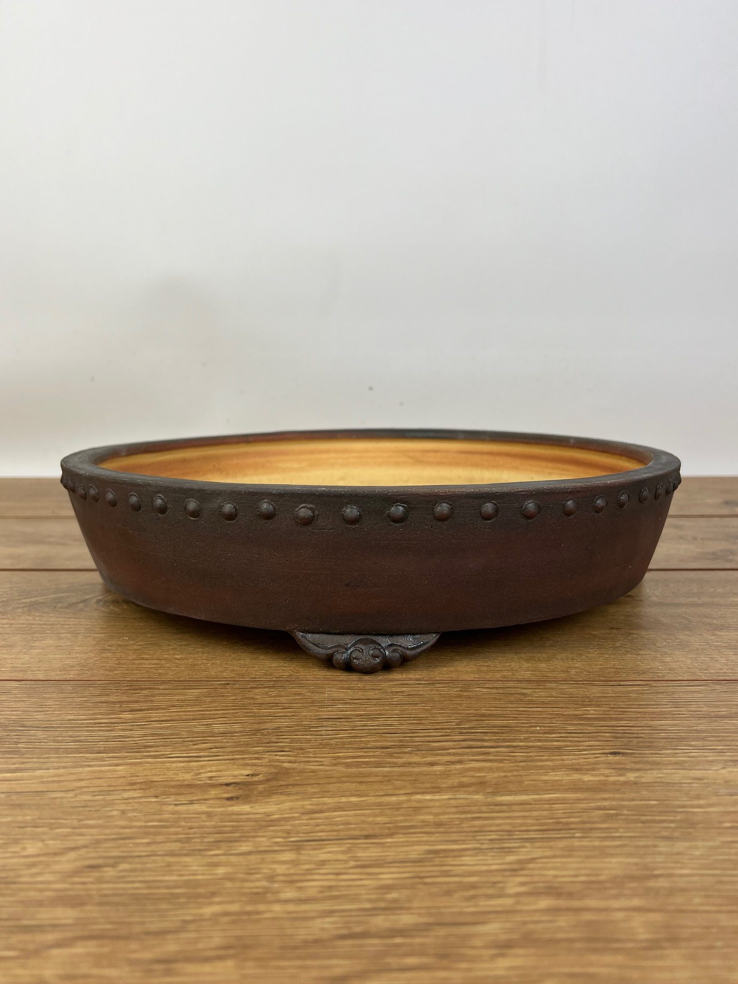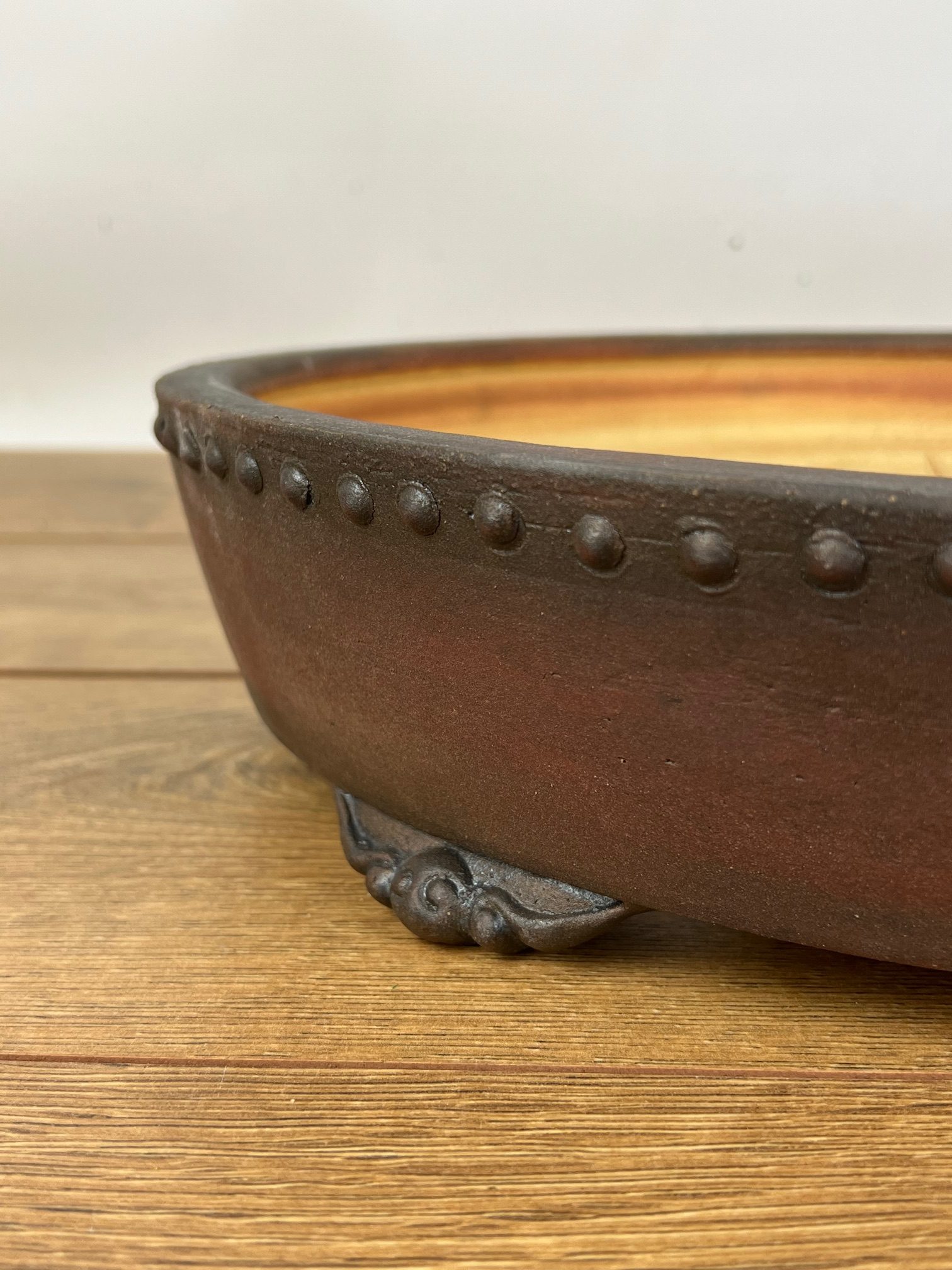 Hand made IBUKI bonsai pot by Mariusz Folda. Size: 37 x 8,5 cm high.