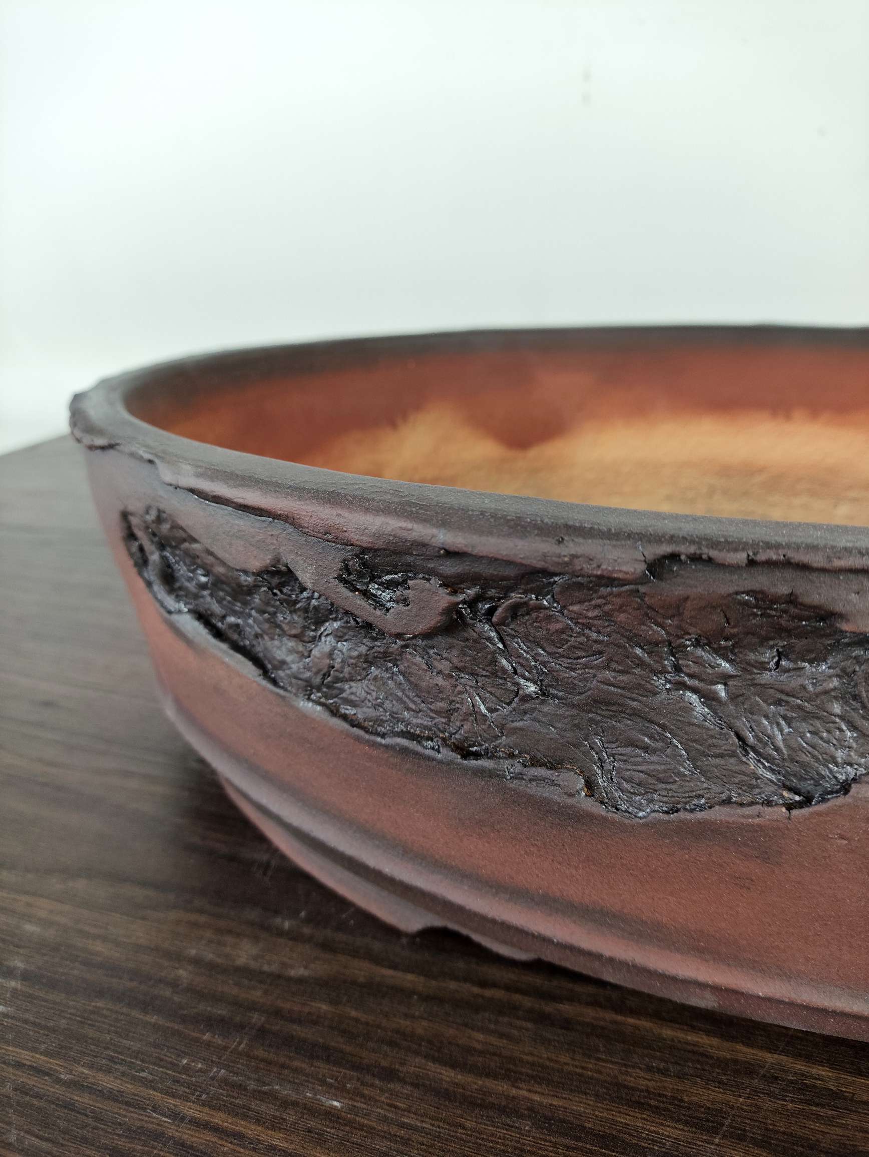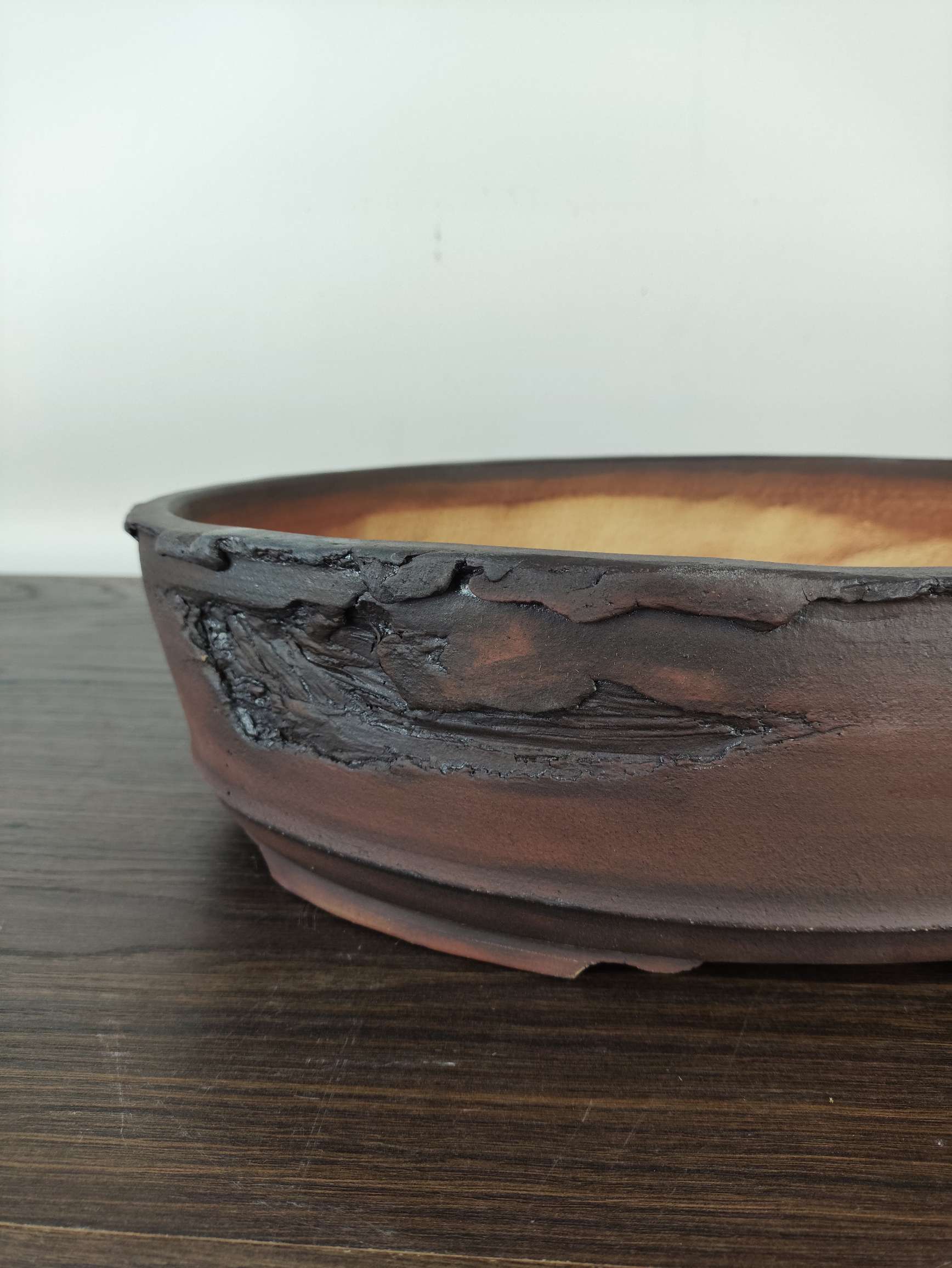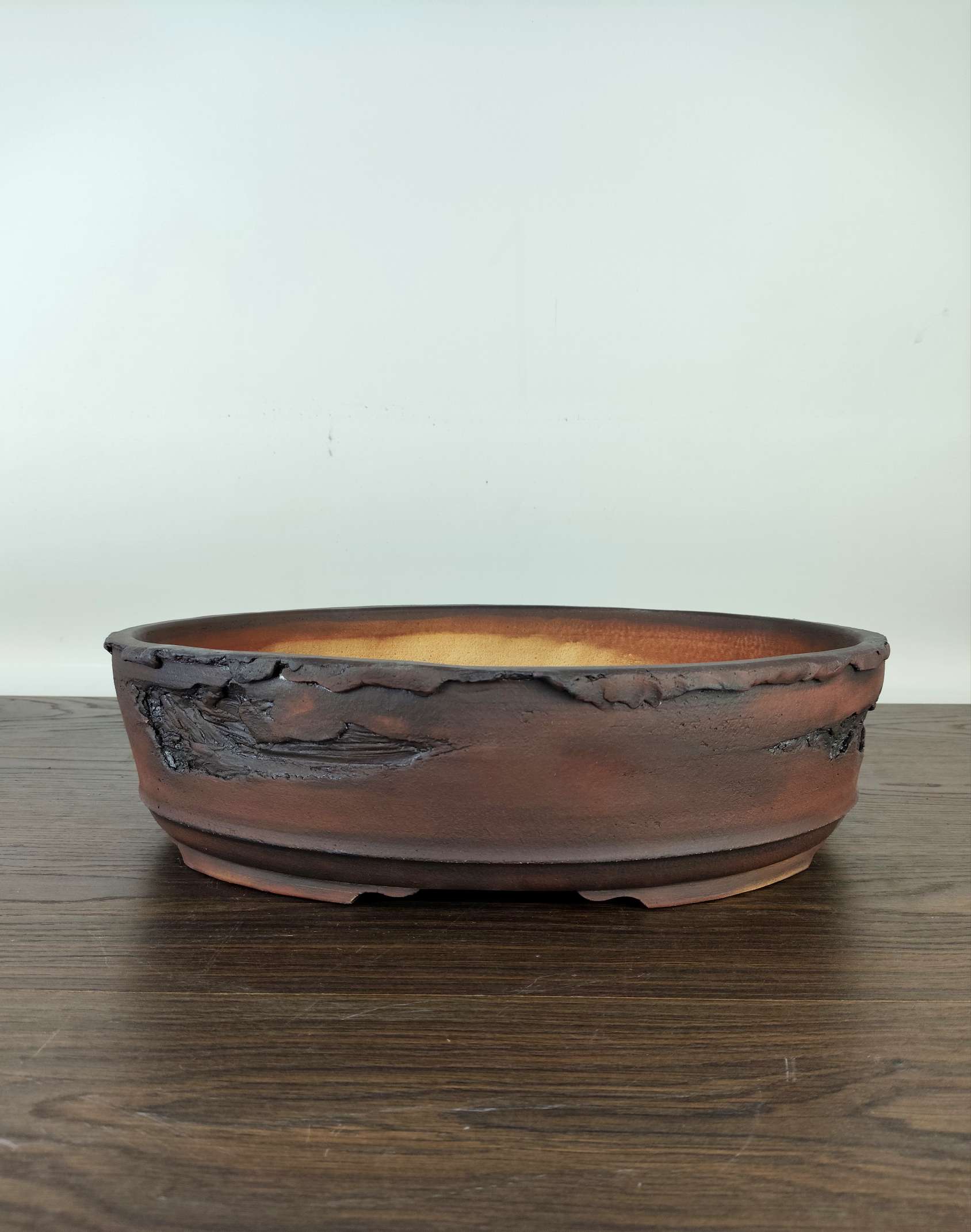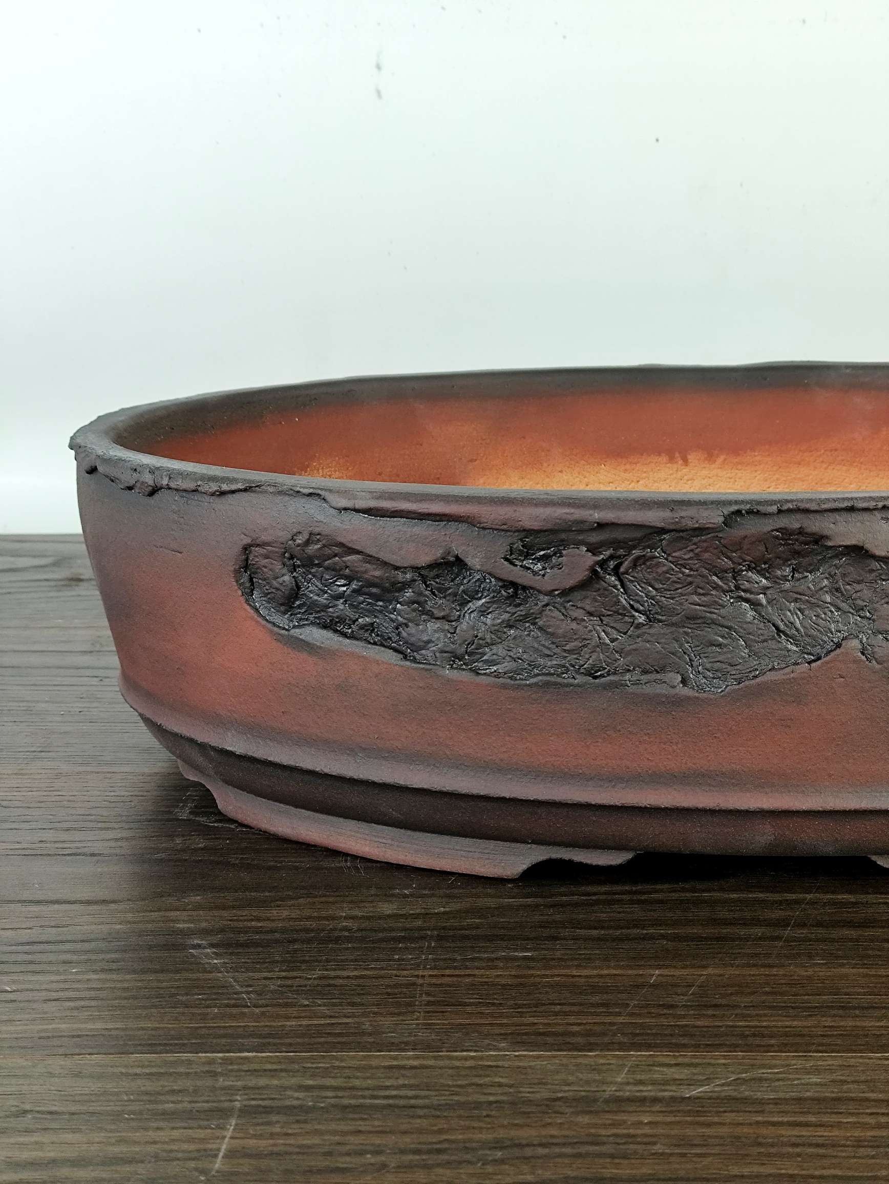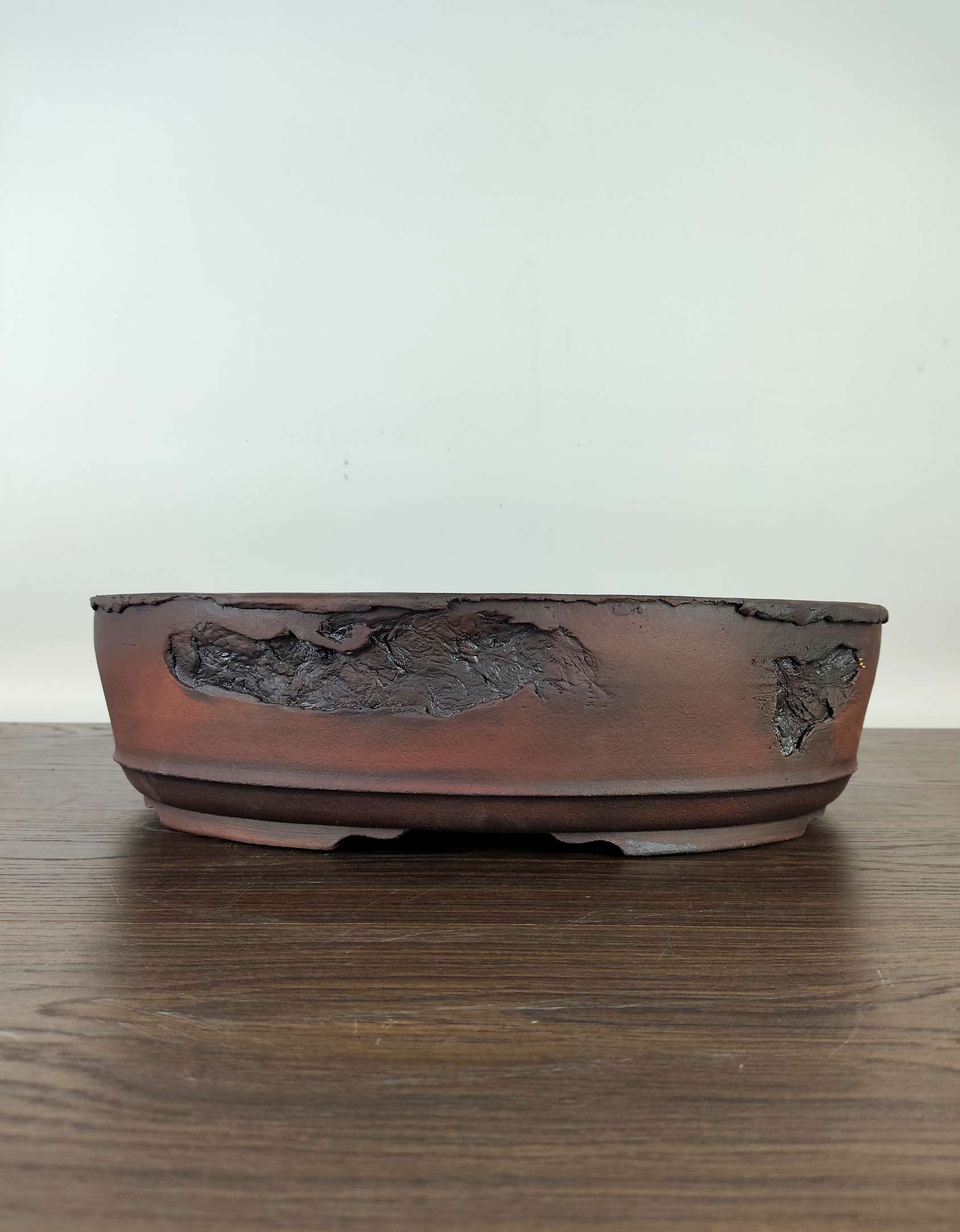 Hand made IBUKI bonsai pot by Mariusz Folda. Size: 42 x 30,5 x 11 high
