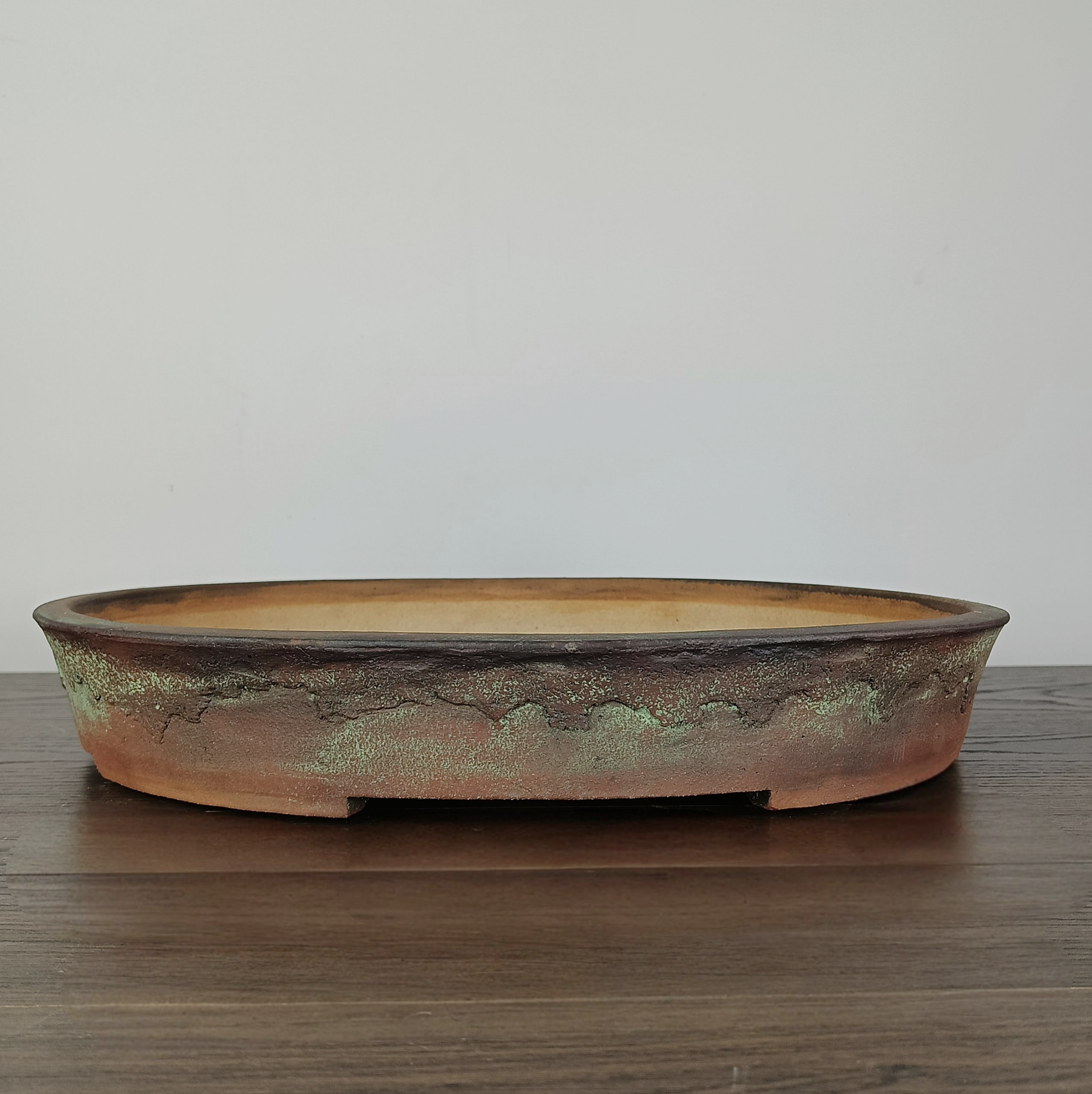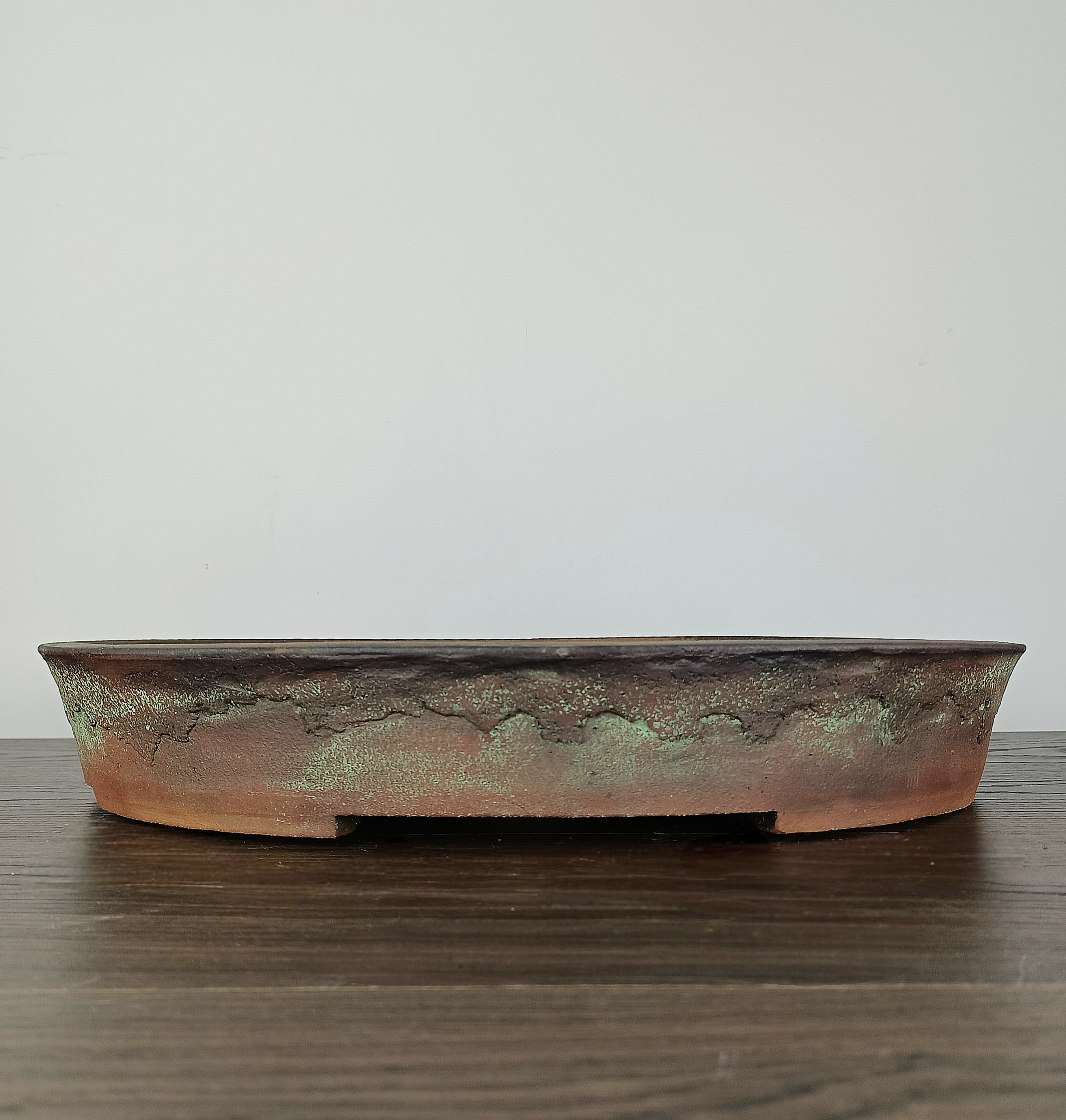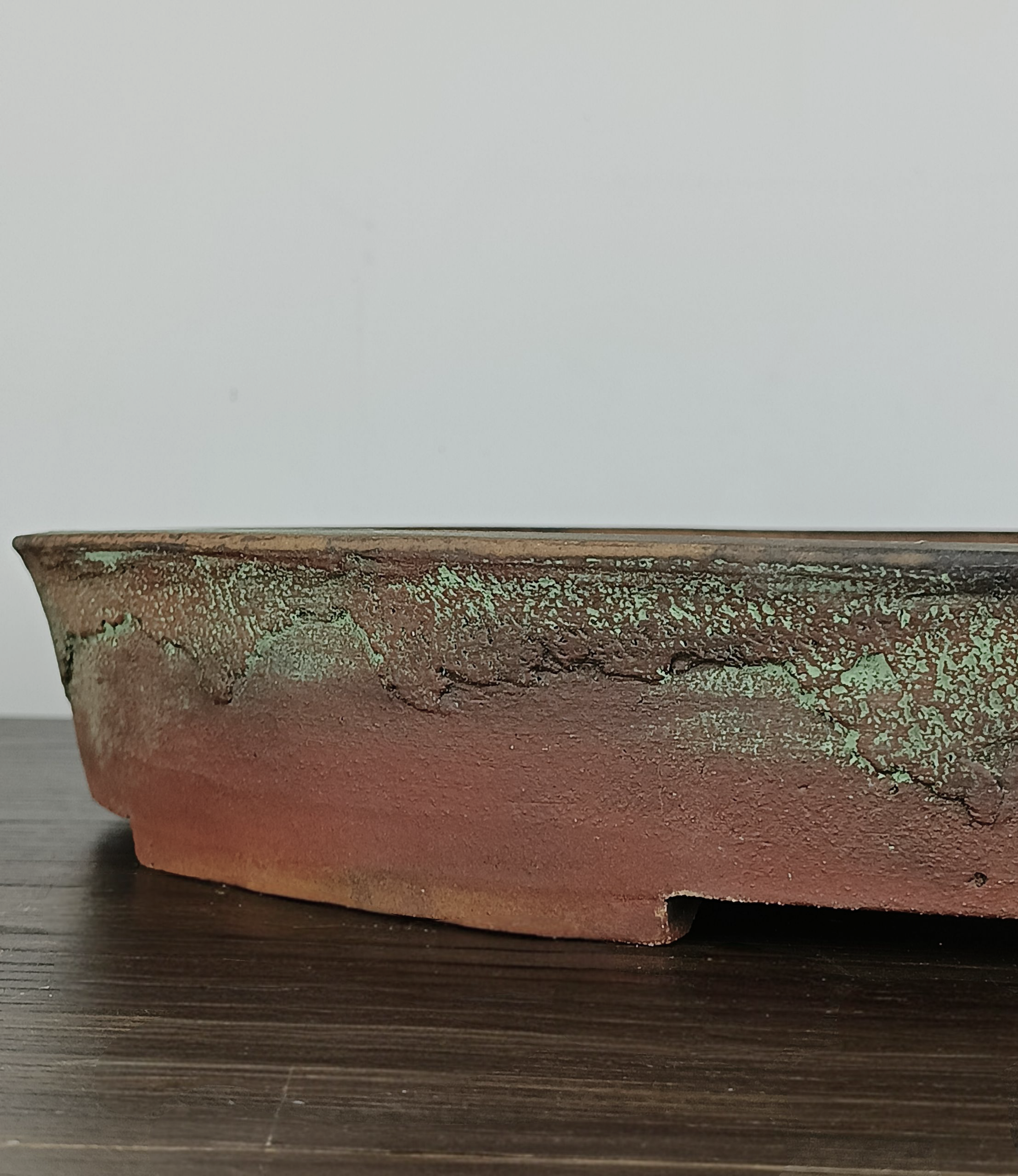 Hand made IBUKI bonsai pot by Mariusz Folda. Size: 46,5 x 37 x 7 high