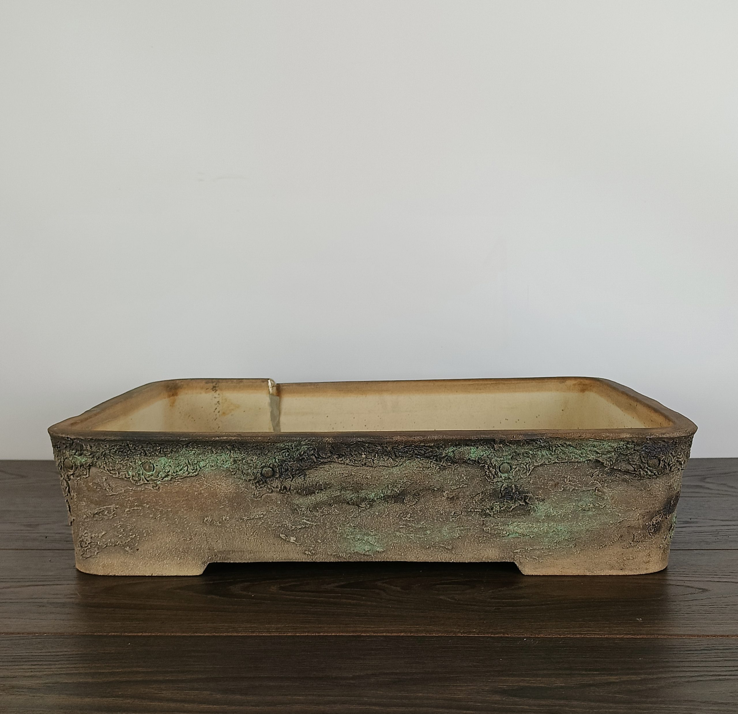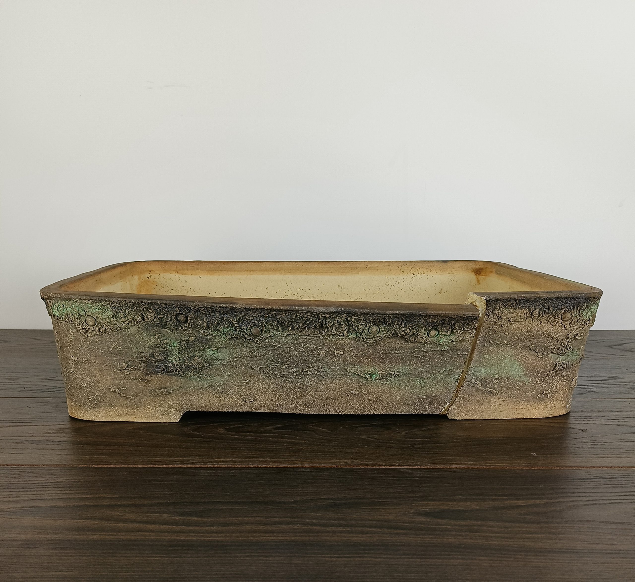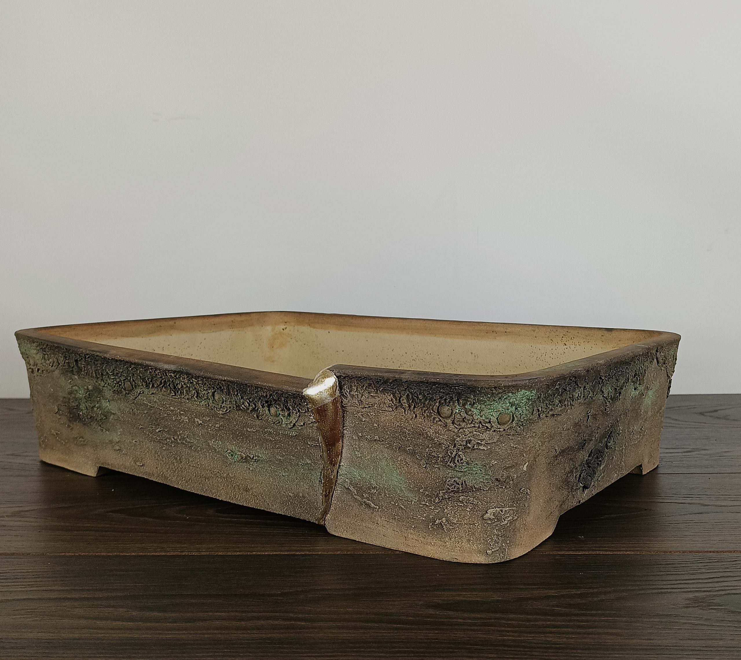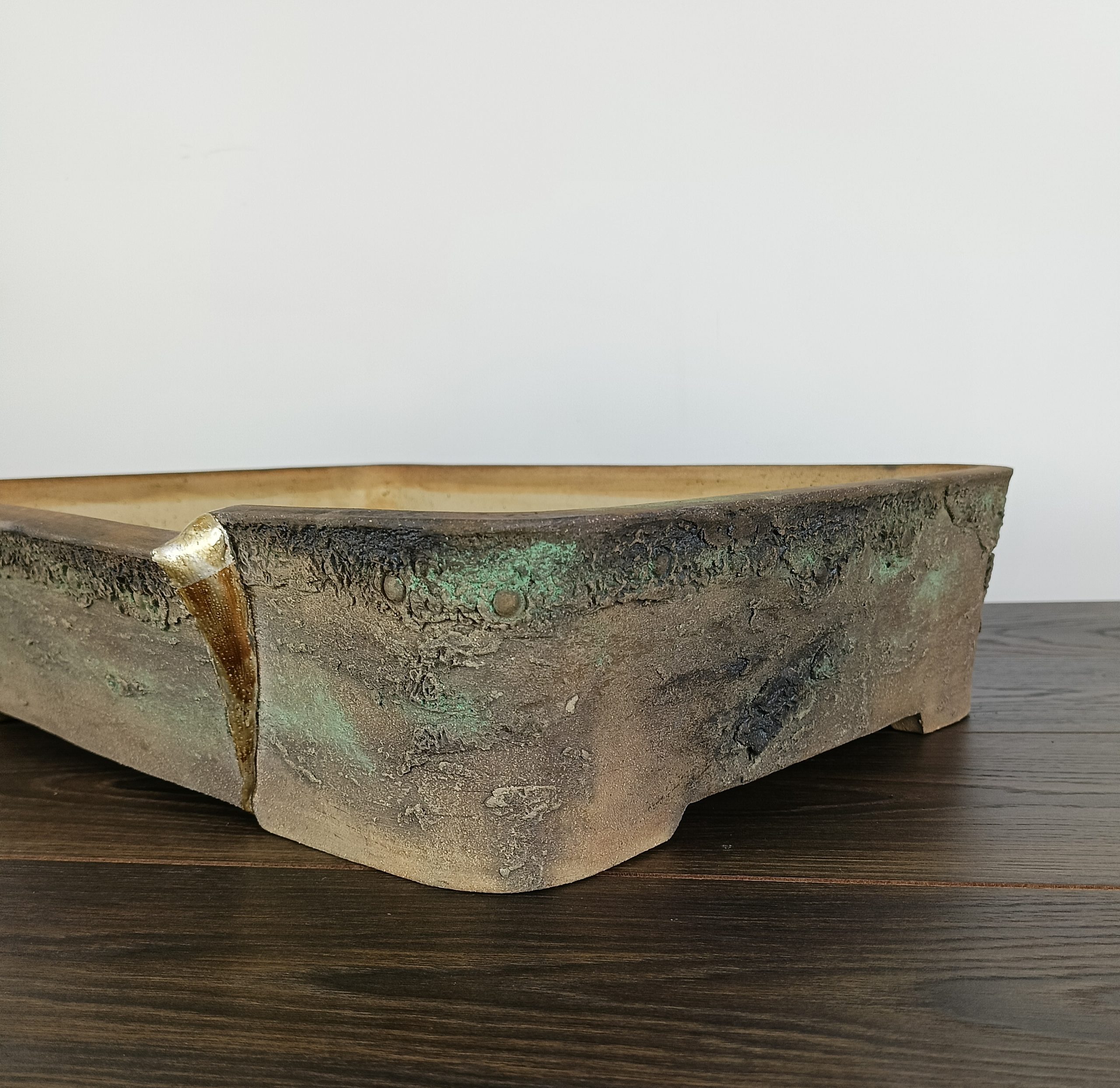 Hand made IBUKI bonsai pot by Mariusz Folda. Size: 54 x 39 x 12 high