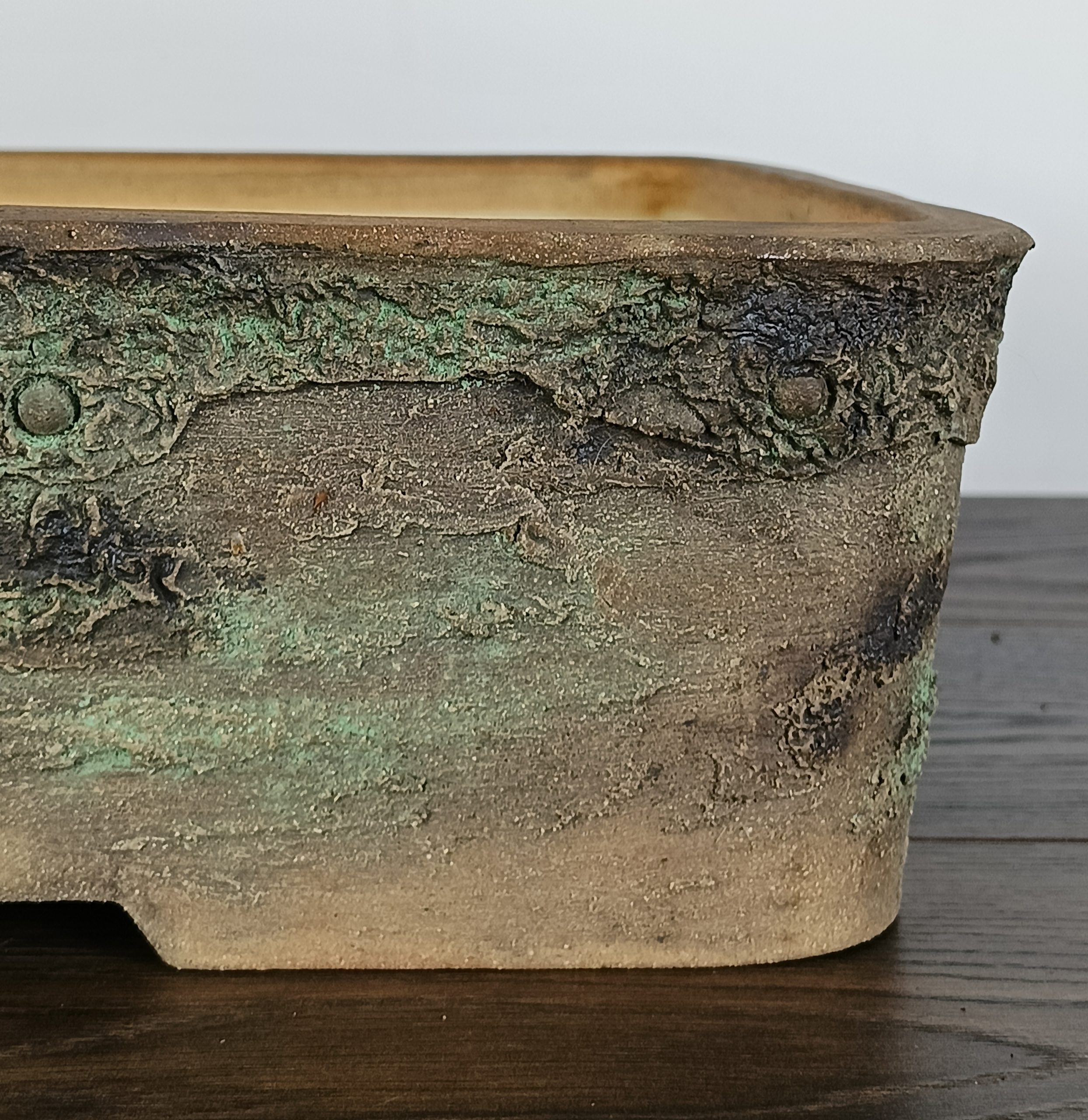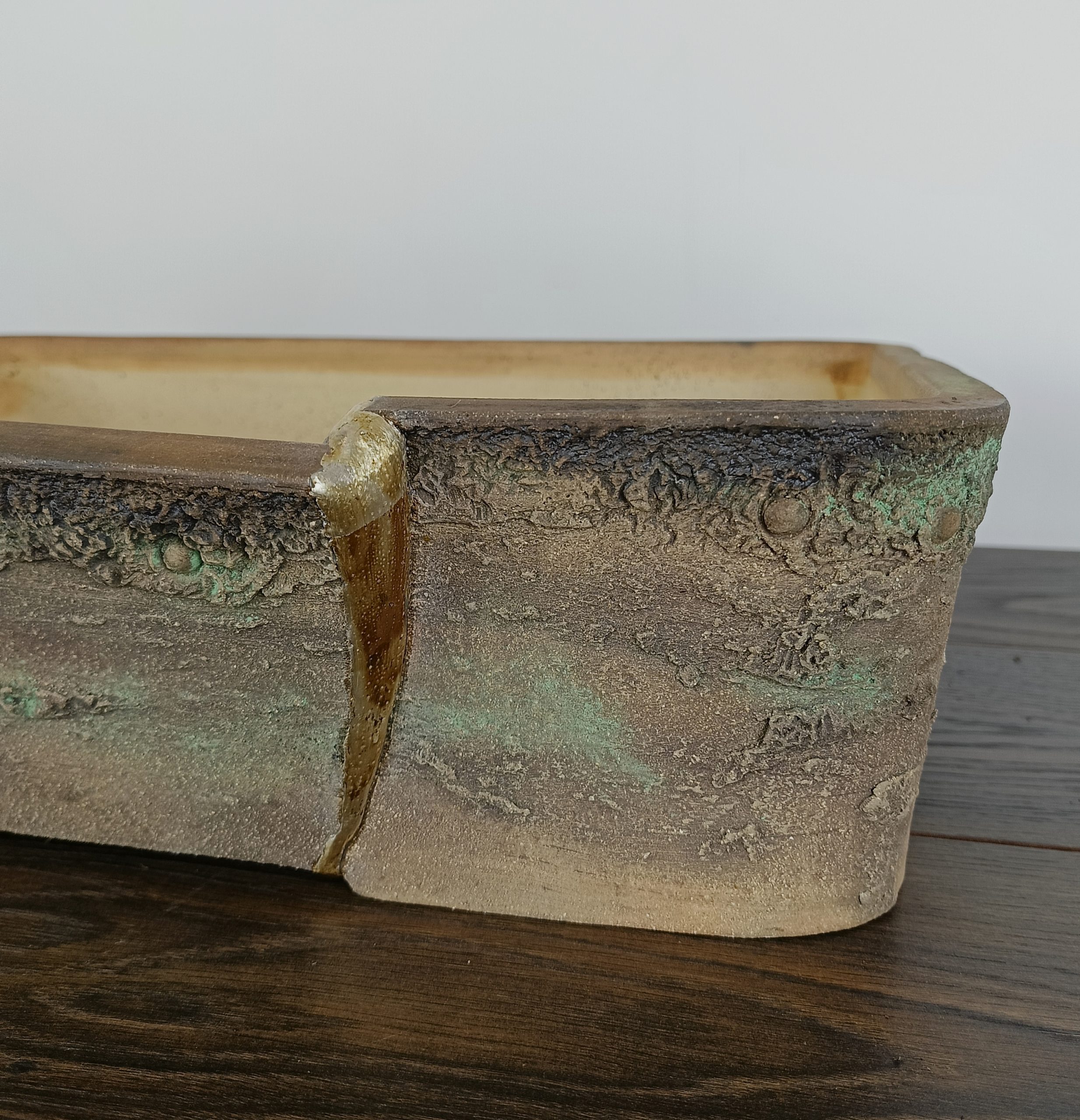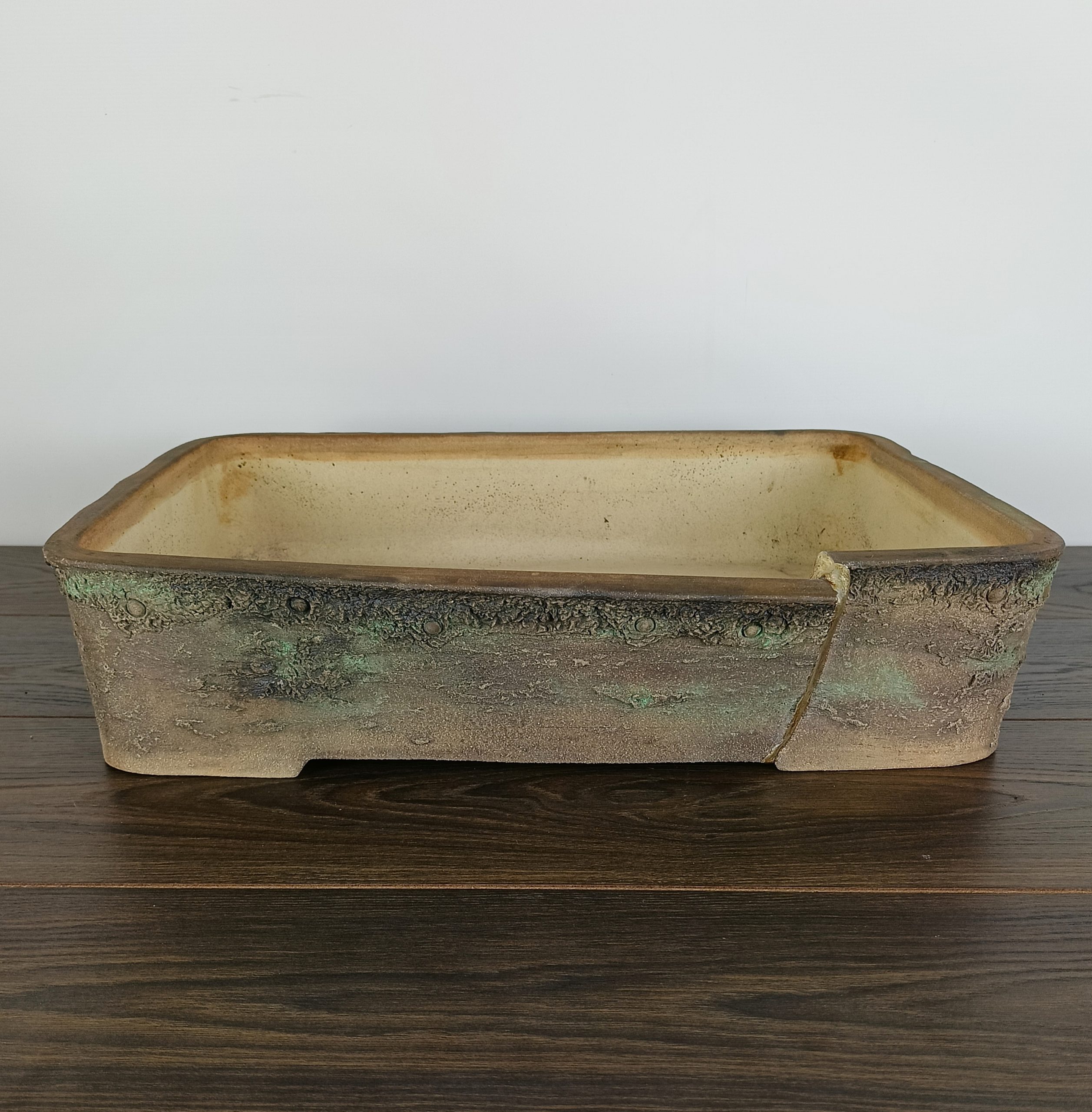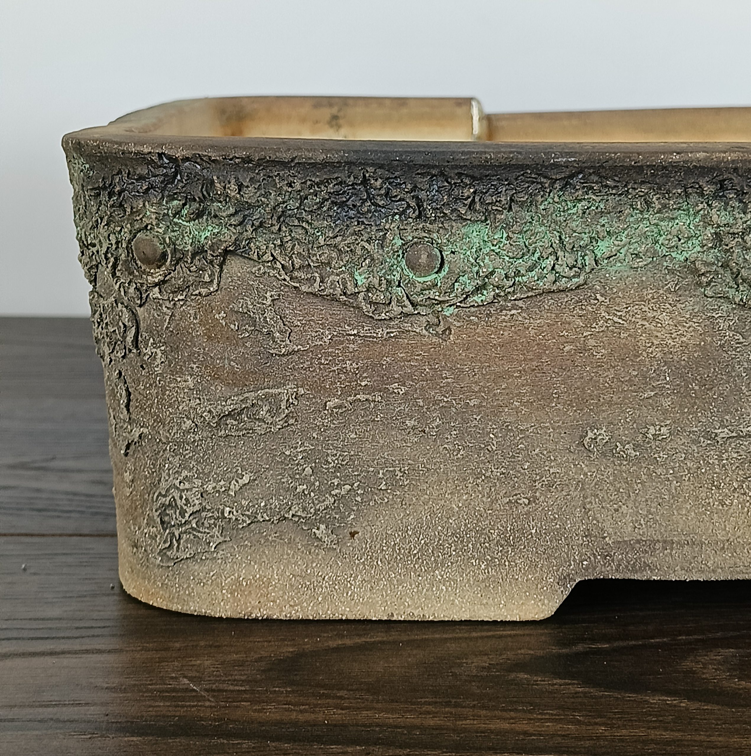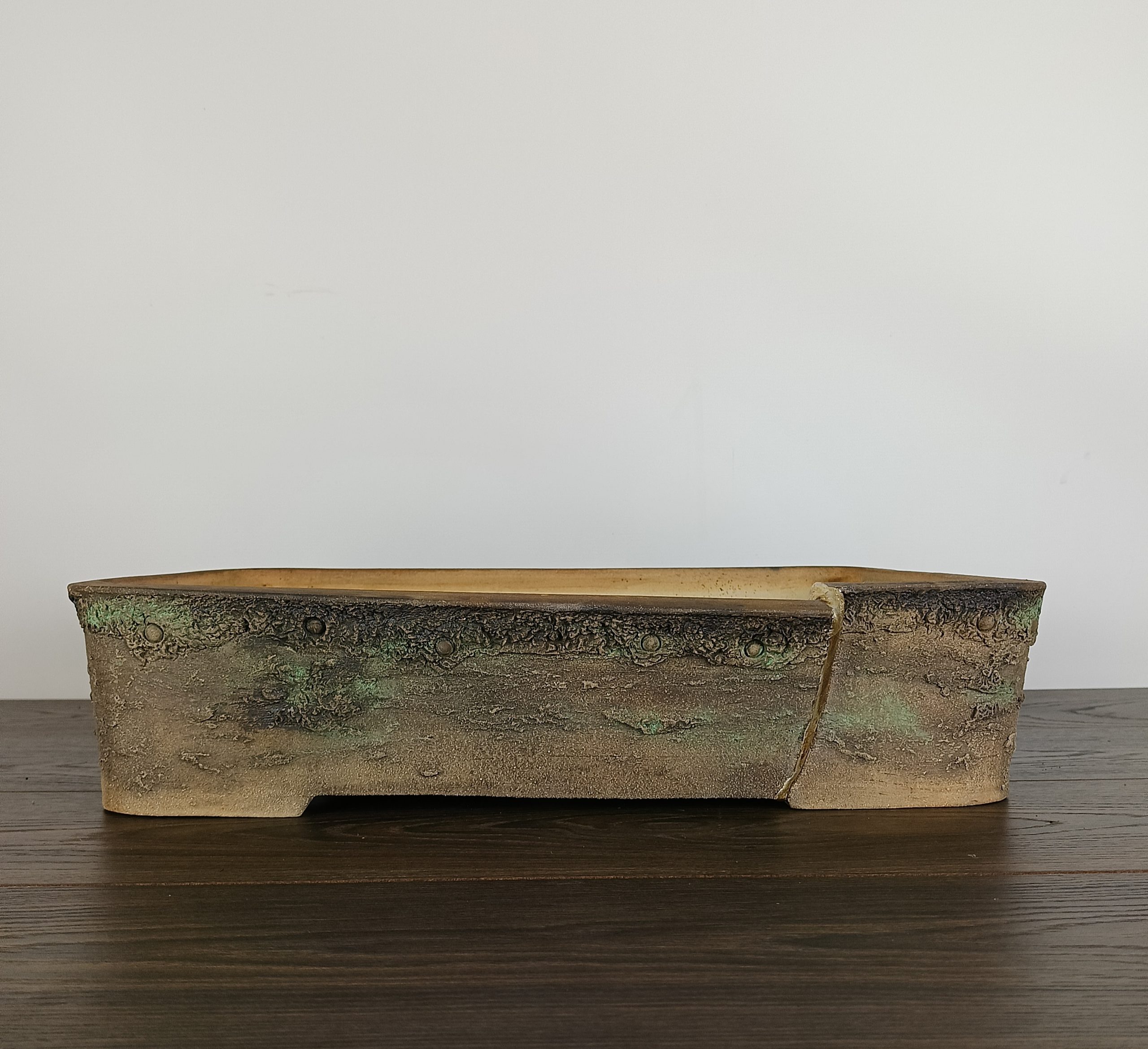 Hand made IBUKI bonsai pot by Mariusz Folda. Size: 54 x 39 x 12 high