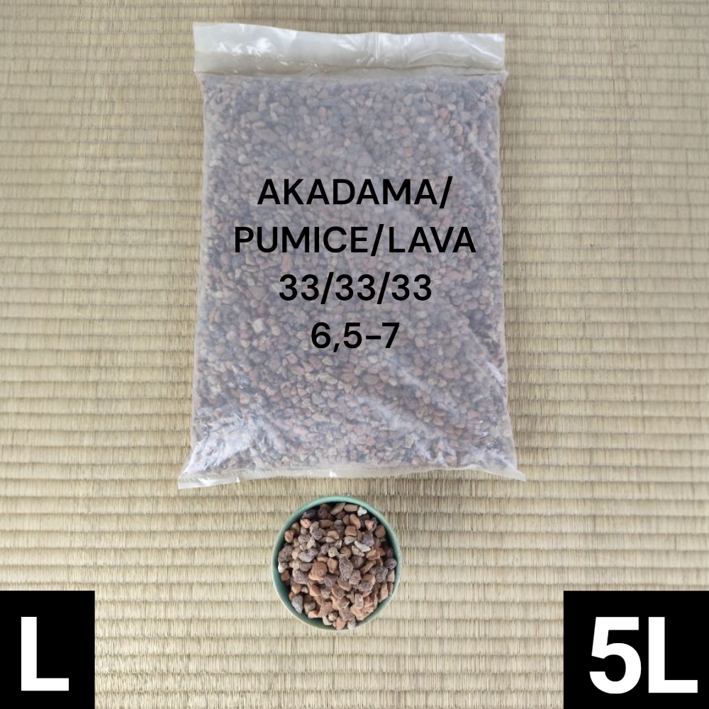 IBUKI BONSAI SIEVED SUBSTRATE MIX AKADAMA 33% / PUMICE (BIMS) 33% / LAVA 33% – LARGE – size 6,5-7 mm – 5L